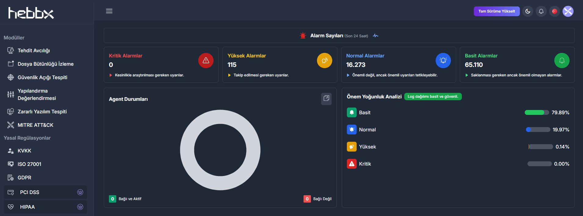 KVKK, ISO 27001, GDPR, PCI DSS ve HIPAA gibi yasal standartlara uyumlu log yönetimi sağlayın. Hebbx, denetim süreçlerinizi kolaylaştırır ve tam şeffaflık sunar.
